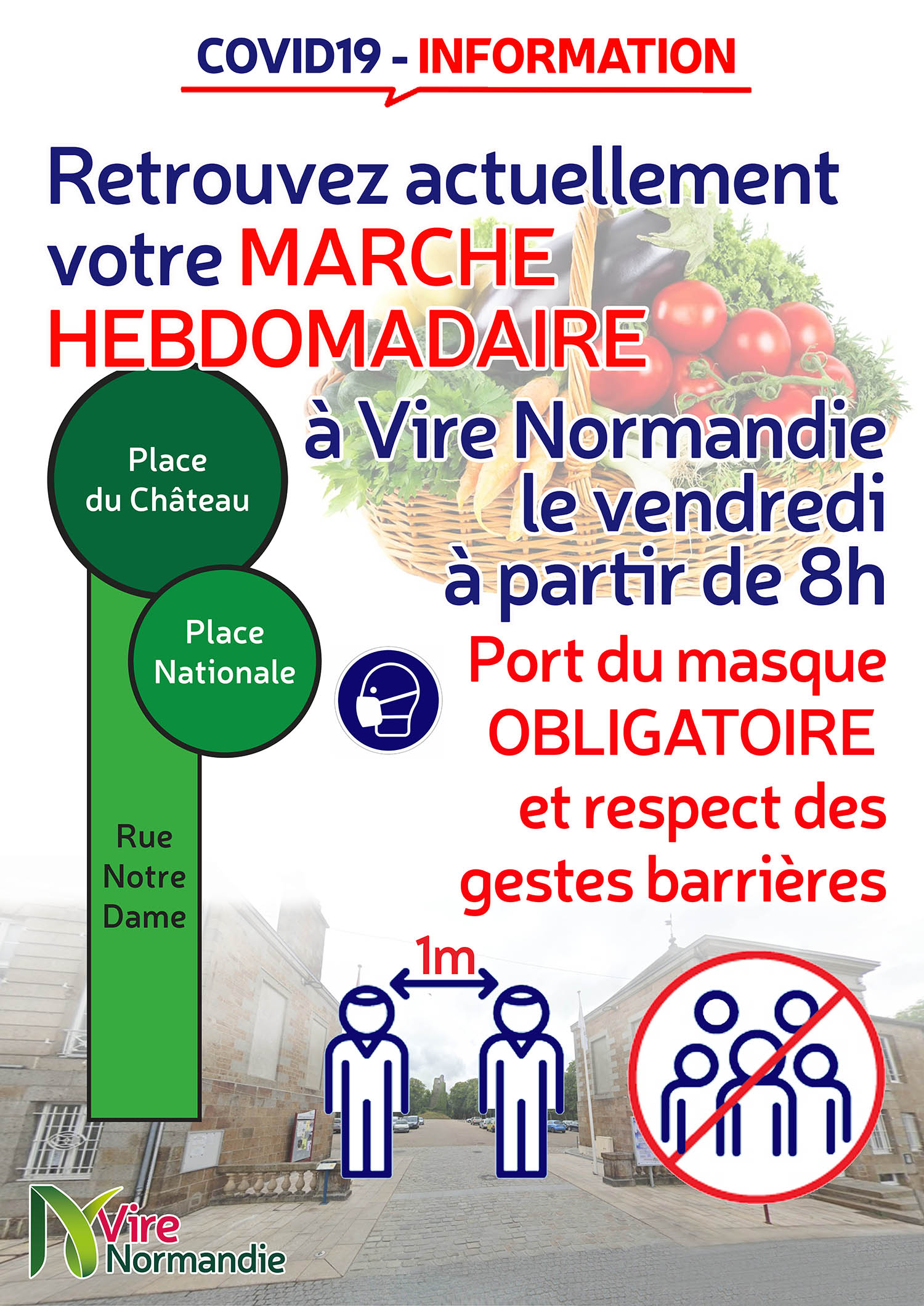Retrouvez votre marché place du Château, place Nationale et rue Notre-Dame. Port du masque obligatoire et respect des gestes barrières pour la sécurité de tous.